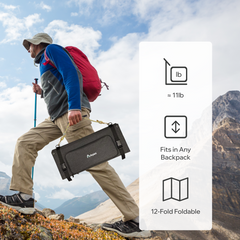 Folds into 12 compact sections, reducing storage space and improving portability compared to traditional folding solar panels.